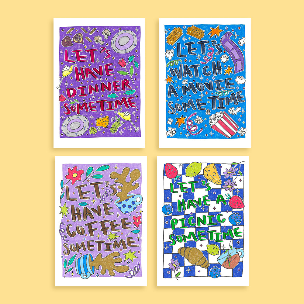 These vibrant cards are the perfect nudge to make plans happen—whether it’s coffee, a picnic, dinner, or a movie. Send one to a friend, a crush, or someone you’ve been meaning to catch up with—because good times start with asking.
