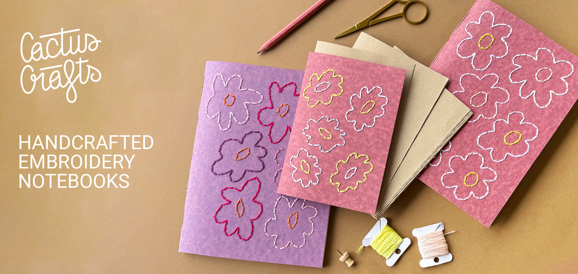 Discover the charm of handmade craftsmanship with our Cactus Crafts embroidered notebooks.