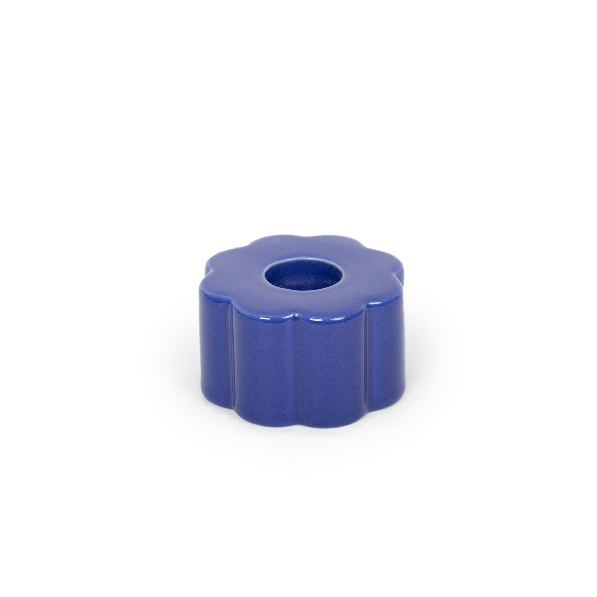 Helio Ferretti Small Blue Flower Ceramic Candle Holder – Elegant Floral Décor with a Fresh Touch