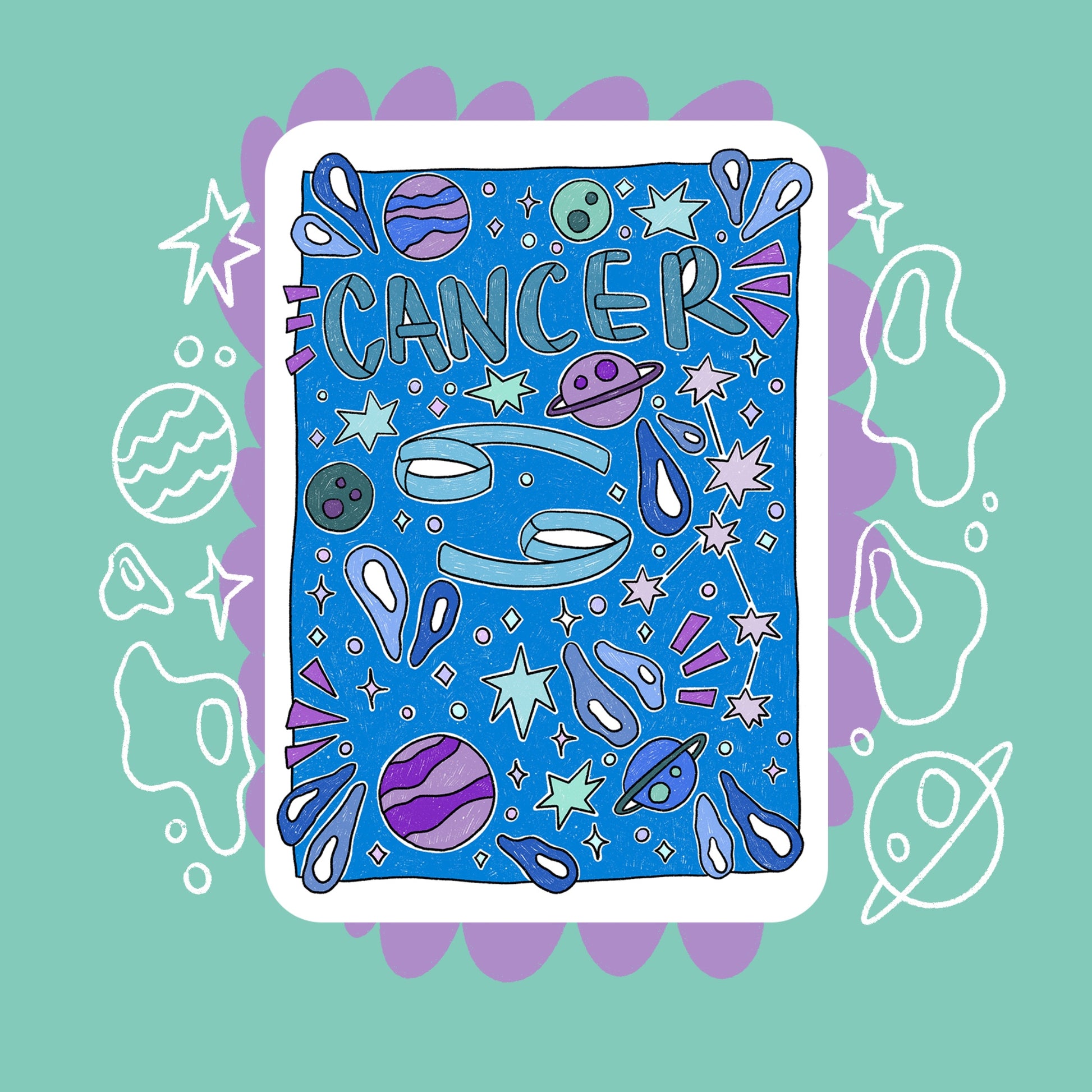 Celebrate the heartfelt energy of Cancer with this gentle, beautifully illustrated horoscope sticker, part of our Horoscope Collection. Inspired by Cancer’s emotional wisdom and deep care for others, this design speaks to the comfort, strength, and quiet resilience of this water sign.