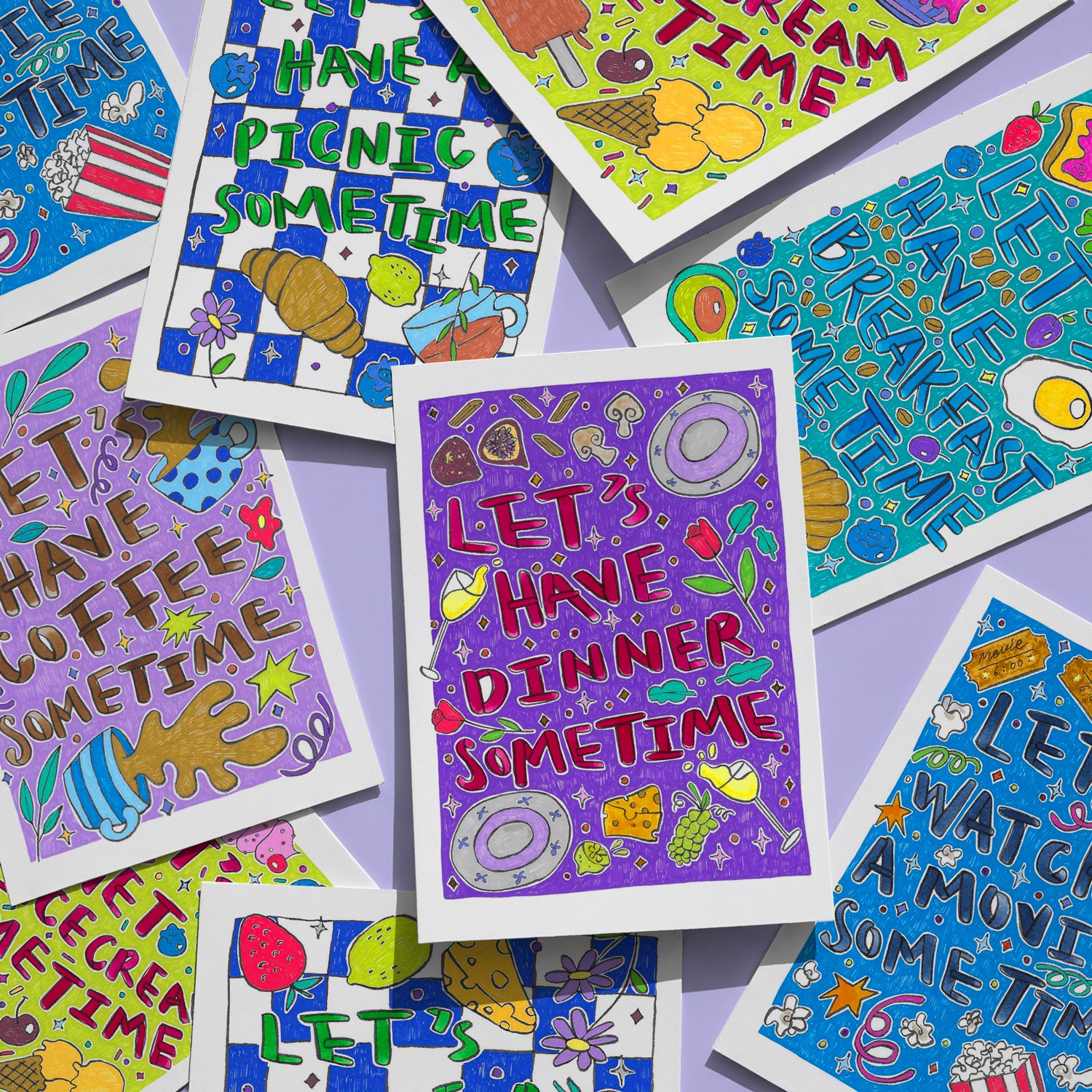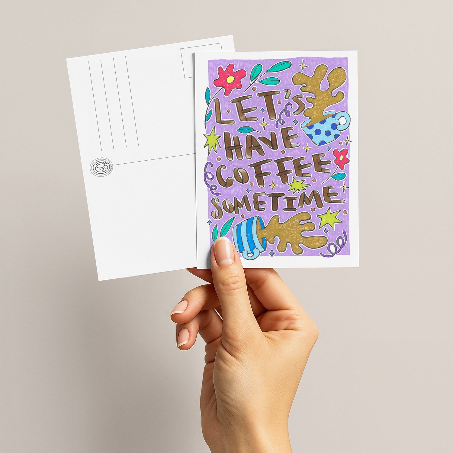 This A6 printed postcard is a sweet and casual way to invite someone for a coffee date. Featuring charming illustrations of coffee cups and cozy elements, it showcases the simple yet inviting quote "Let's have coffee sometime," making it the perfect way to ask someone to share a relaxed, enjoyable moment together.