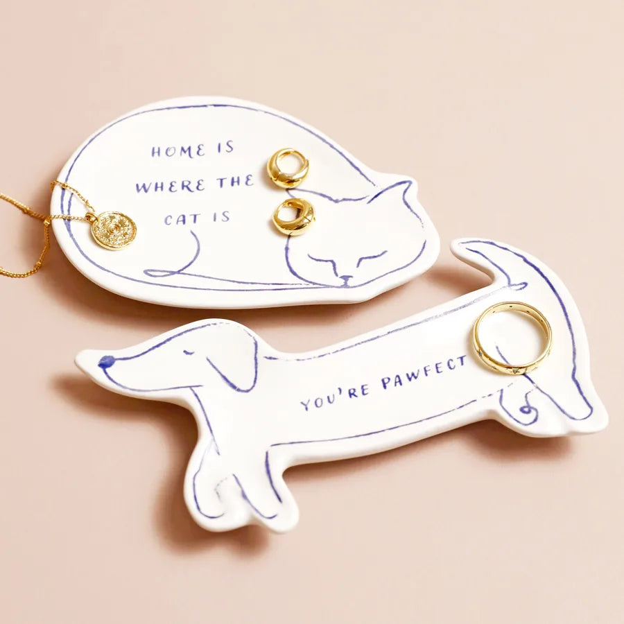 In the shape of a sausage dog, this canine-inspired jewelry tray has a lightly debossed outline in blue detailing a dachshund. The middle of the trinket dish features the quote 'you're pawfect', meaning this little jewelry holder would make a meaningful gift for a loved one. Working as a constant reminder that they are wonderful, why not wrap this tray up along with a pair of earrings you think would suit their style?