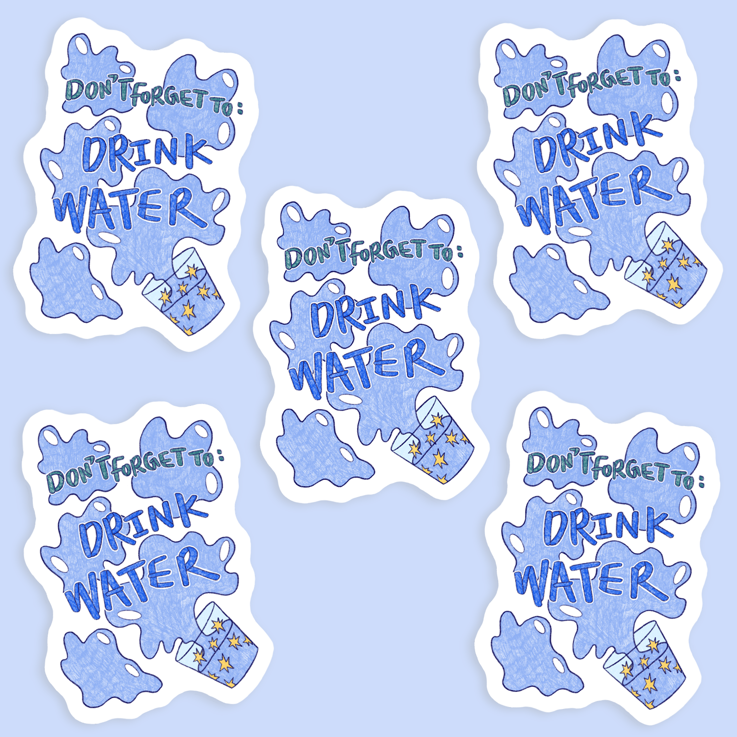 Featuring the quote “don’t forget to: drink water” alongside a simple illustration of a glass of water, this sticker is a sweet little nudge to stay hydrated throughout the day.