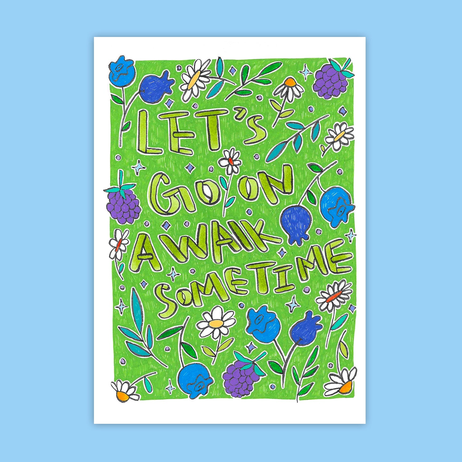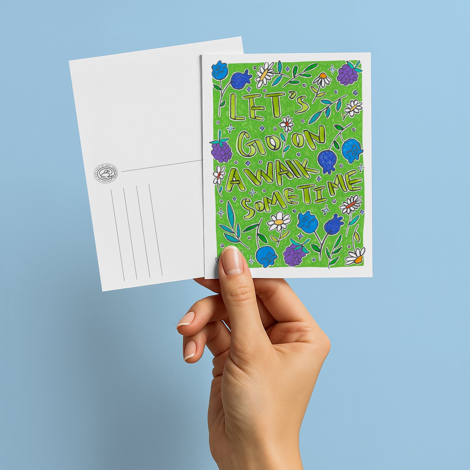 “Let’s Go on a Walk Sometime” postcard is part of the collection “Date Ideas.”