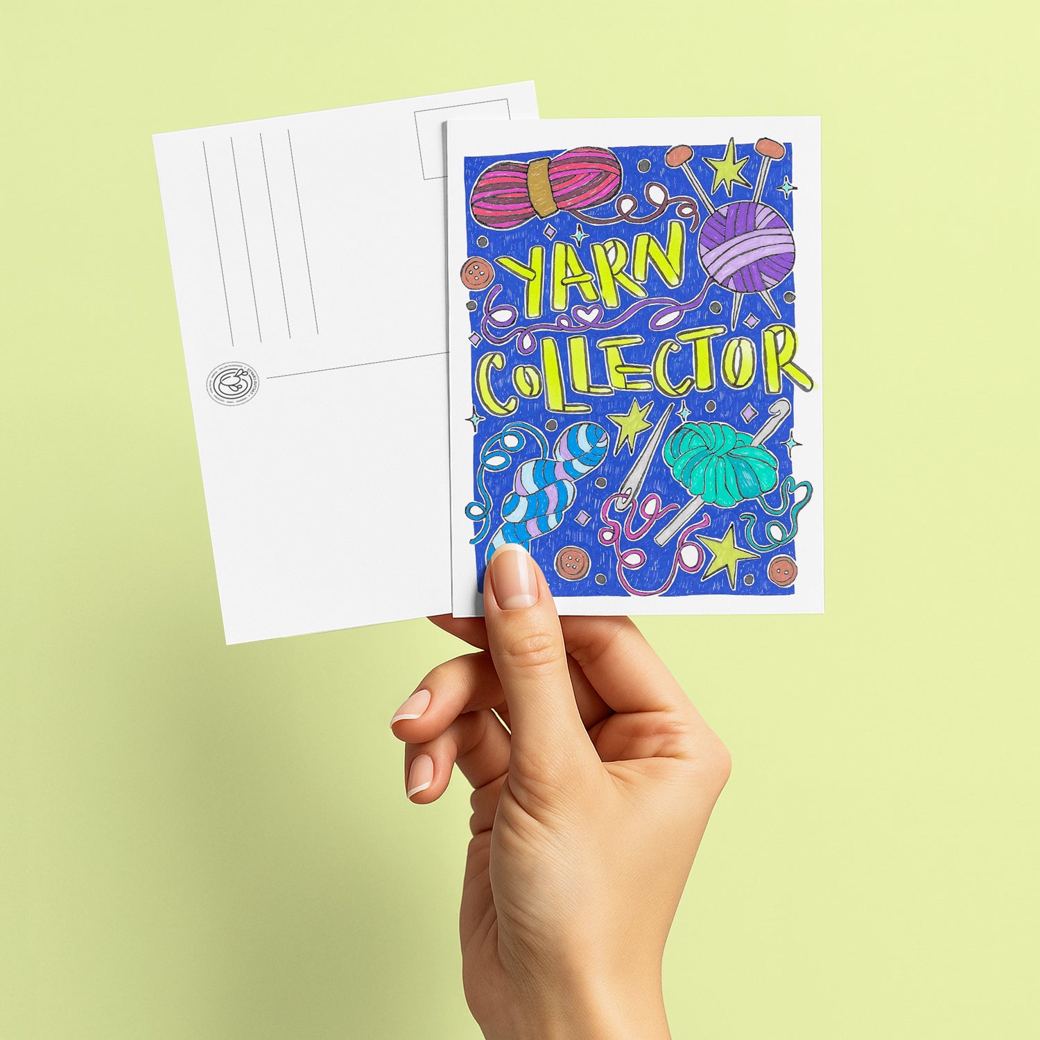 The "Yarn Collector" postcard is made for knitters, crocheters, and fiber lovers who know that every skein tells a story. 🧶✨